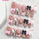 Elevate your autumn aesthetic with this exquisite 10-piece handmade press-on nail set, featuring beloved Sanrio characters in a sophisticated 3D leopard design. Each nail showcases meticulous craftsmanship with charming pink and black bow accents that capture the essence of Y2K style. The duck-shaped nails deliver a modern silhouette, while the glossy finish ensures a polished, salon-quality appearance. Crafted from premium carborundum material for durability and precision, these versatile nails transition seamlessly from daily wear to festive occasions. Perfect for autumn celebrations or year-round styling, this set combines playful character charm with contemporary French nail aesthetics. Handmade with attention to detail, these nails offer effortless glamour without the salon commitment.