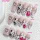 Transform your manicure with this exquisite 10-piece press-on nail collection celebrating iconic Sanrio charm. Each handmade nail combines playful bow and heart rhinestone accents with sophisticated pink leopard and ice-clear French designs. The versatile duck-bill almond shape suits every aesthetic, from minimalist elegance to bold Y2K statements. Crafted with precision carborundum materials and finished with a lustrous gloss, these nails deliver professional results without salon visits. Seamlessly adaptable across seasons and occasions—whether New Year celebrations, Valentine's romance, or Halloween festivities—they're your go-to for instant glamour. Perfect for those who crave personality-packed nails that balance cute charm with contemporary edge.
