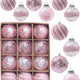 12pcs Clear Pink Christmas Ball Ornaments, 3.15-Inch Shatterproof Decorative Tree Baubles, Elegant Rustic Hanging Decorations for Holiday Parties