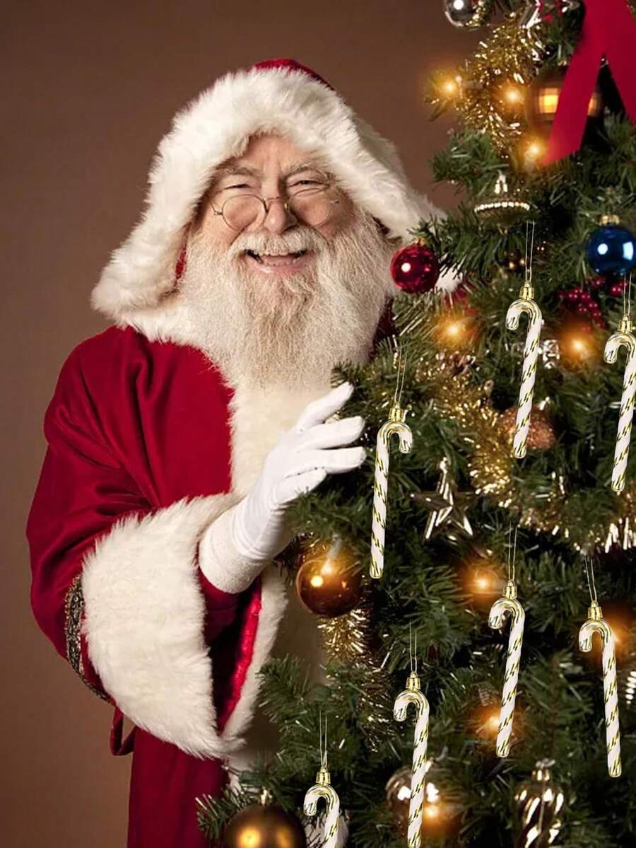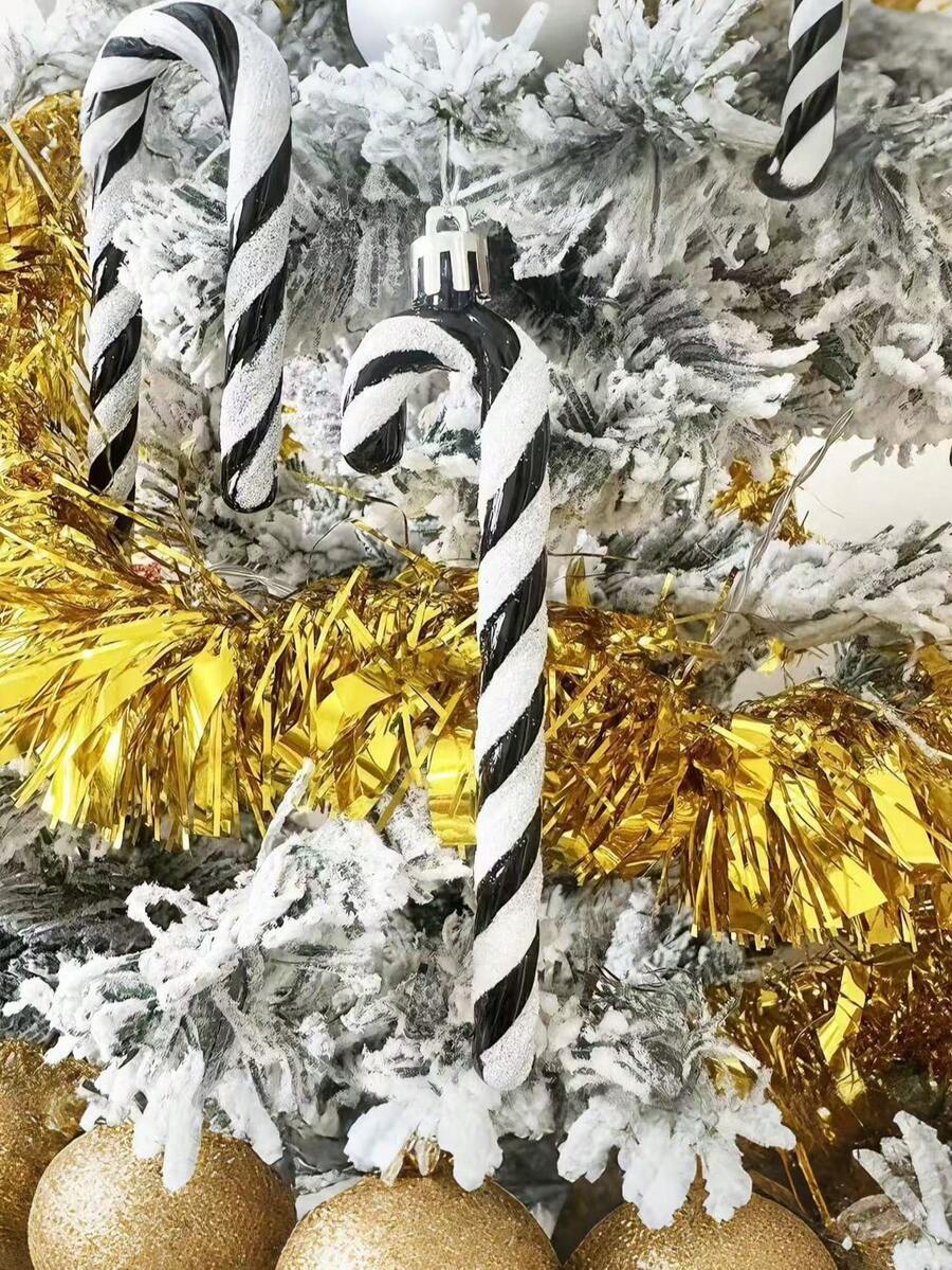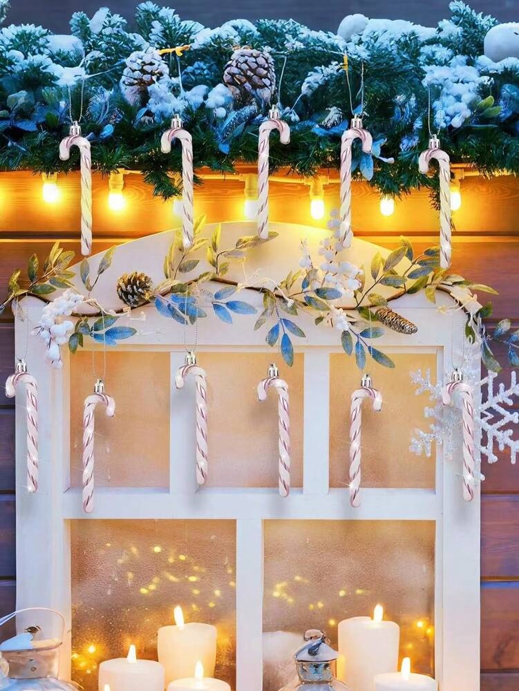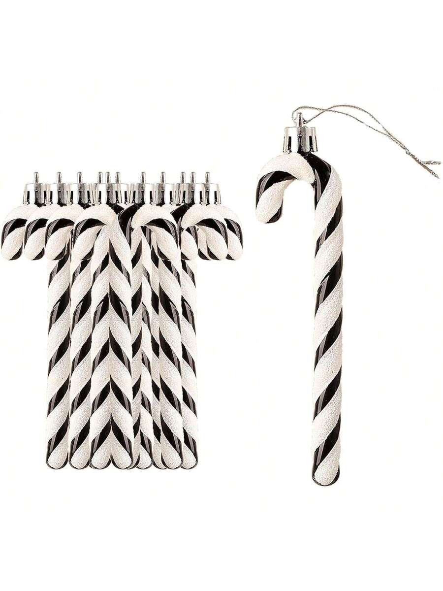 12pcs Pink Glitter Candy Cane Christmas Ornaments, 5.5" Plastic Hanging Decorations for Christmas Trees & Holiday Displays