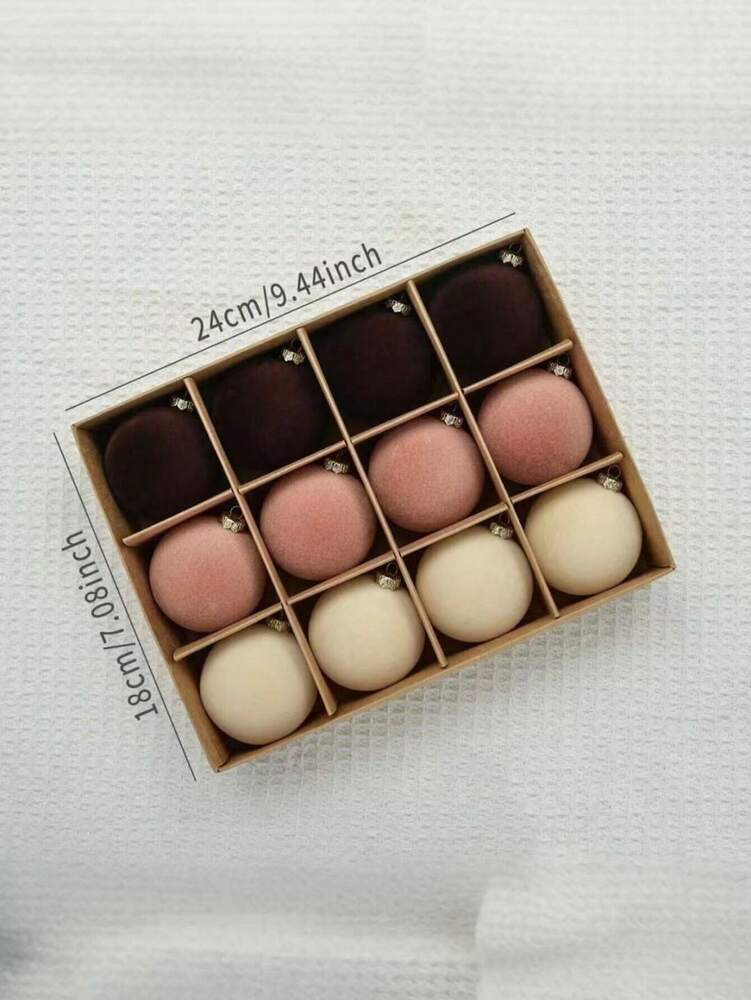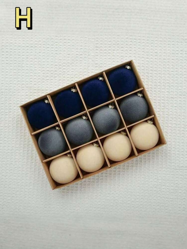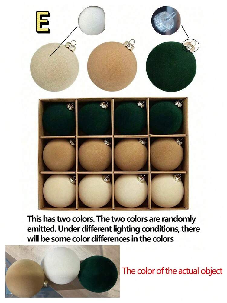 12pcs Velvet Flocked Christmas Decoration Balls, Drop-Proof Plastic Ornaments, Elegant Tree Baubles for Parties, Birthdays, or Holiday Photoshoots