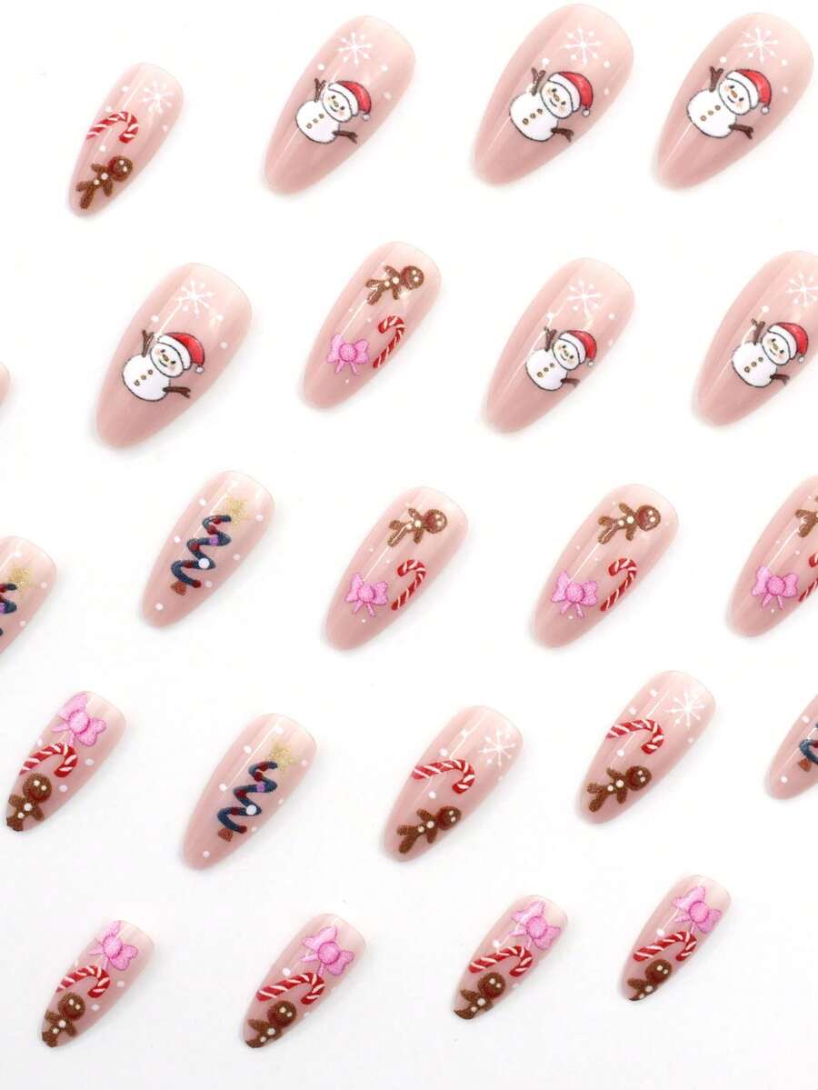 Transform your festive look with this 24-piece almond press-on nail set, featuring charming red Santa hat designs perfect for the holiday season. Crafted from durable ABS material with a glossy finish, these short false nails deliver a polished appearance in seconds. Ideal for Christmas, New Year, and winter celebrations, they suit office settings, dates, parties, and everyday wear. The versatile goth and Y2K aesthetic works year-round, while the solid construction ensures reliable wear. Simply apply and enjoy salon-quality nails without the commitment. Whether you're embracing festive cheer or adding a touch of seasonal style, this set offers effortless elegance for any occasion.