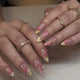 Elevate your nail game with this stunning 24-piece press-on nail set featuring medium almond shapes and elegant yellow French tips adorned with delicate floral designs. Crafted from premium ABS material with a glossy finish, these full-coverage acrylic nails deliver a salon-quality look in seconds. Perfect for summer days, special occasions, or everyday glamour, this versatile set transitions seamlessly across all seasons. Whether you're celebrating New Year's Eve, Valentine's Day, Christmas, or simply want to refresh your style, these nails offer effortless application and long-lasting wear. Ideal for women seeking professional-looking nail art without the salon commitment.