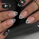 Elevate your nail game with these 24-piece short oval press-on nails featuring classic white and black French tips adorned with delicate heart and flower patterns. Crafted from premium ABS material with a glossy finish, these full-coverage acrylic nails deliver a salon-quality look in minutes. The versatile design transitions seamlessly across all seasons and occasions—from Valentine's Day romance to Christmas elegance. Each set includes professional-grade jelly glue and a nail file for flawless application and customization. Perfect for those seeking durable, reusable nails that combine timeless French styling with contemporary 3D embellishments.