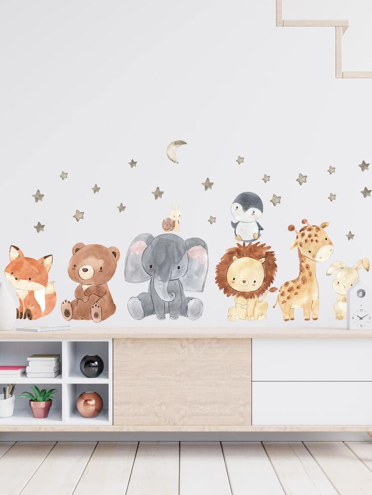 2pcs Cartoon Animal Wall Stickers Set, Cute Vinyl Decals for Living Room or Bedroom Decor, Easy Peel Wall Art for Home