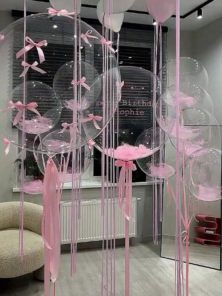 52pcs 20-Inch Pink Feather Balloons with Ribbons, Elegant Decorative Balloon Set for Wedding, Outdoor Photography or Room Decor