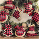 8pcs Buffalo Plaid Fabric Ball Ornaments, Christmas Tree Hanging Decorations, Rustic Red and Black Check Fabric Balls for Farmhouse Holiday Style