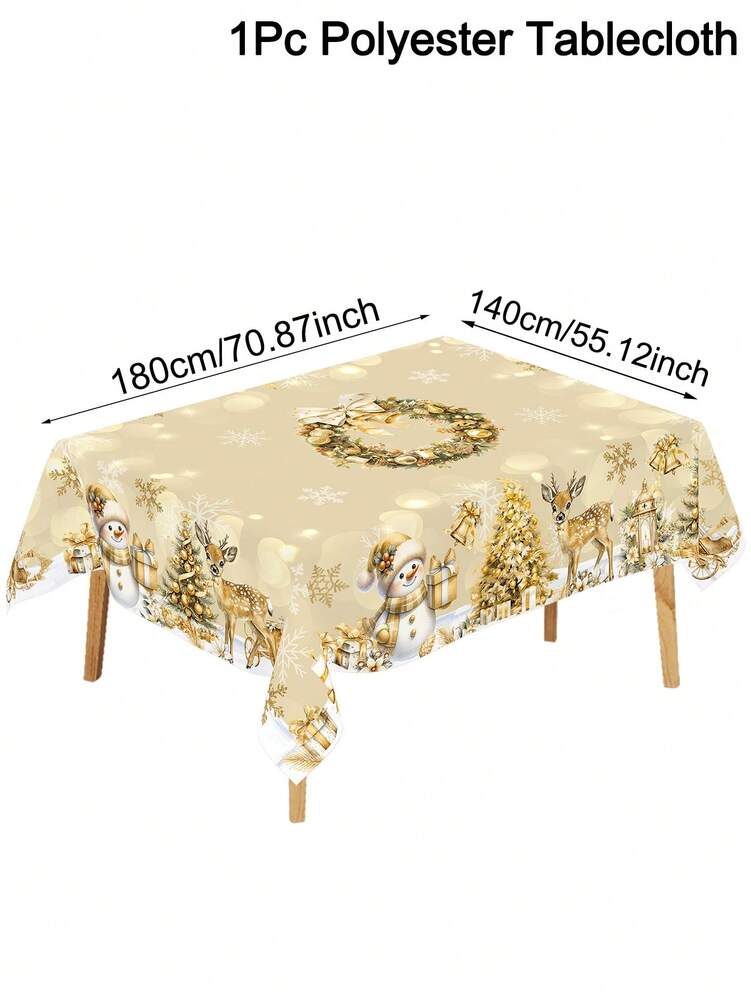Transform your holiday table into a winter wonderland with this festive Christmas tablecloth featuring charming snowman and reindeer wreath designs. Crafted from durable 100% polyester, this multicolor table cover resists stains and spills, making cleanup effortless during festive gatherings. Perfect for Christmas celebrations, themed parties, and family dinners, it brings seasonal cheer to your dining room and kitchen. The vibrant holiday motifs create an inviting atmosphere that delights guests of all ages. Ideal for adding that finishing touch to your holiday décor while protecting your table surface.