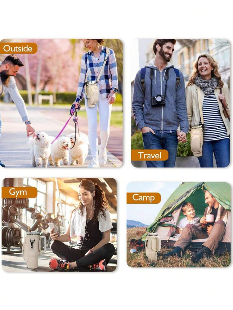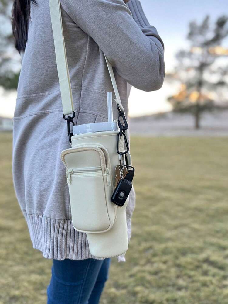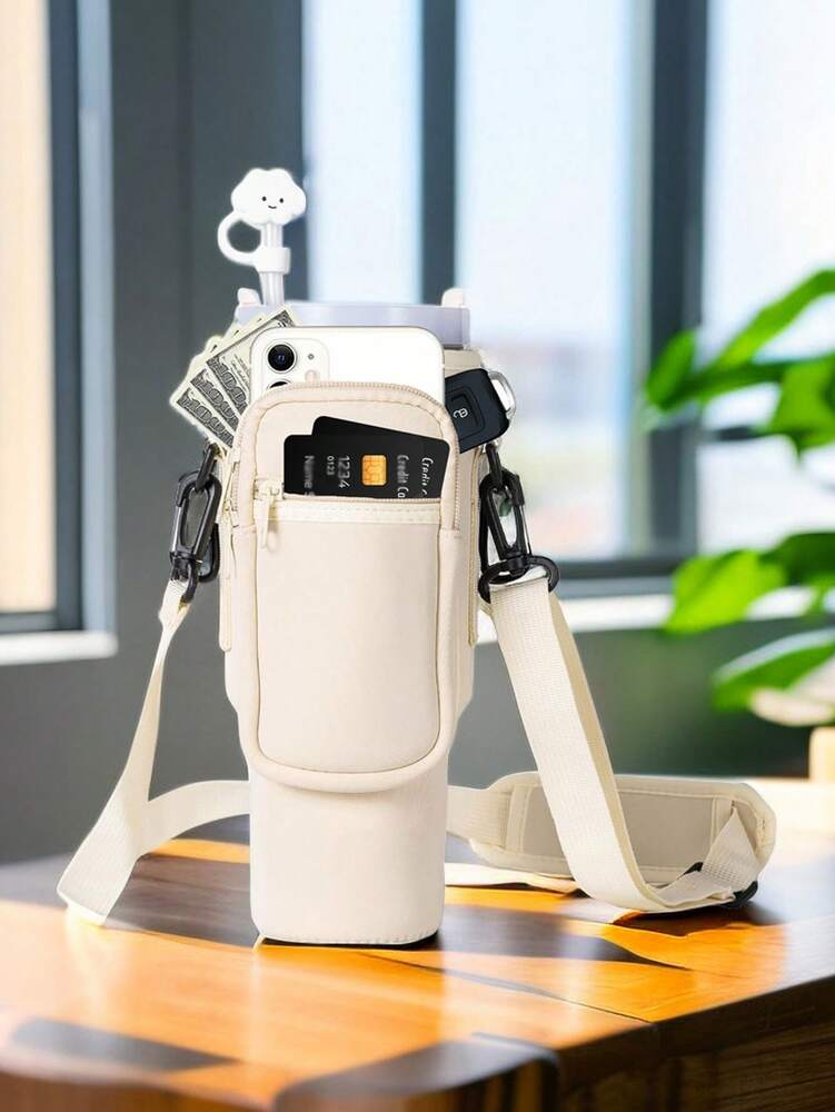 Portable 40oz Tumbler Cup Case with Adjustable Strap, Dual Storage Pockets for Travel or Outdoor Use, Functional Fitness Cup Cover and Wallet Combo
