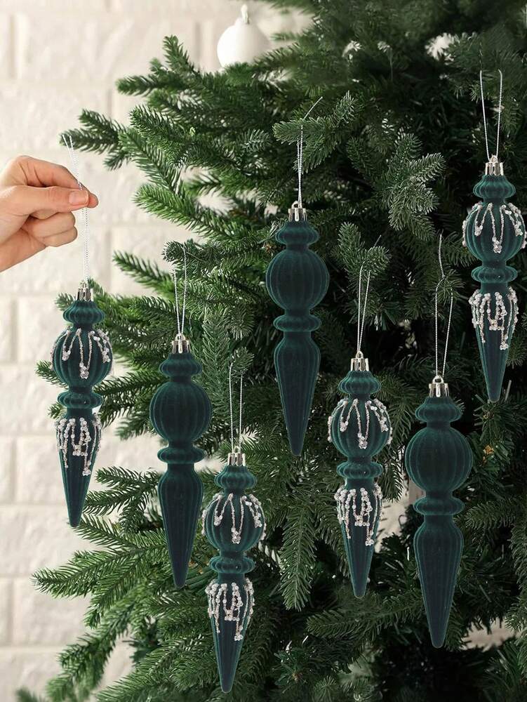 6/12pcs Velvet Christmas Ornament Set (7"), Textured Shatterproof Burgundy Tree Decorations, Elegant Holiday Home Decor