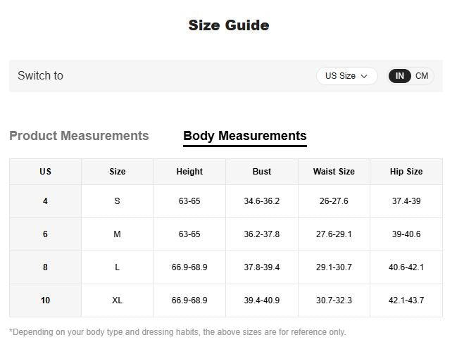 Please refer to the size chart provided on each product page to find your best fit.